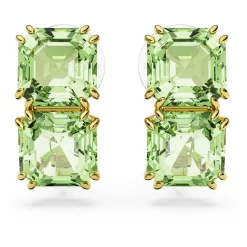 Swarovski Orbita Clip Earrings Asymmetrical Design, Octagon Cut, Multicolored, Gold-tone Plated