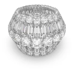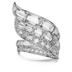 Swarovski Hyperbola Cocktail Ring Carbon Neutral Zirconia, Mixed Cuts, White, Rhodium Plated