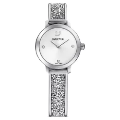 Swarovski Cocktail Watch Swiss Made, Full Pavé, Metal Bracelet, Silver Tone, Stainless Steel