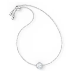 Add the timeless Swarovski sparkle to your everyday outfits with this beautiful bracelet. It consists of a simple, fine chain adorned with a beautifully cut white stone bounded by a line of white pavé. The size of the bracelet can be adjusted easily with a sliding closure. The classic look is perfect to supplement casual styles and makes this bracelet a beautiful gift giving idea.