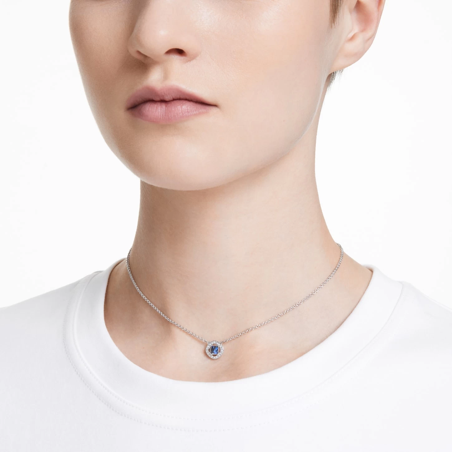 Swarovski Angelic Necklace Square Cut, Blue, Rhodium Plated