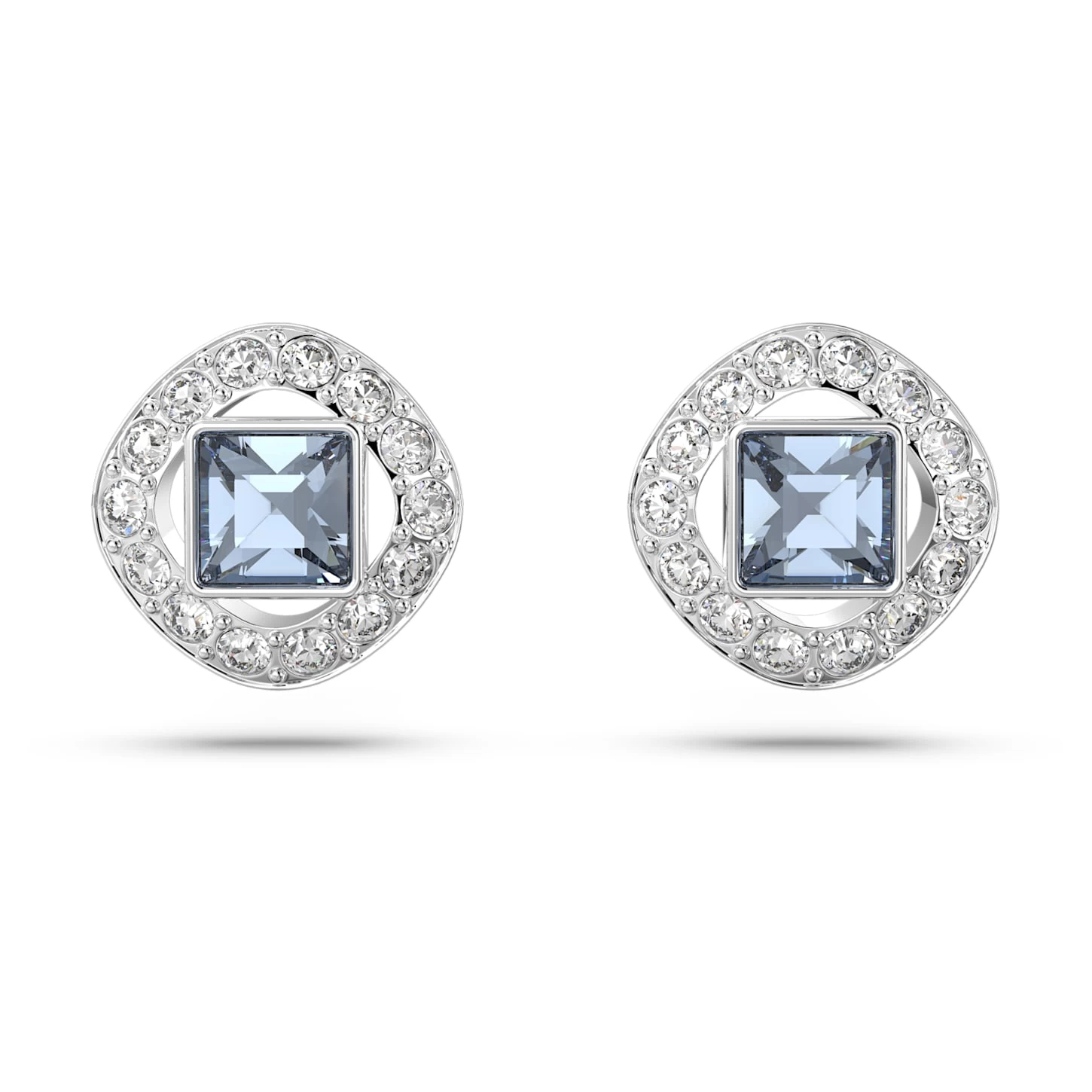 Swarovski Angelic Stud Earrings Square Cut, Blue, Rhodium Plated
