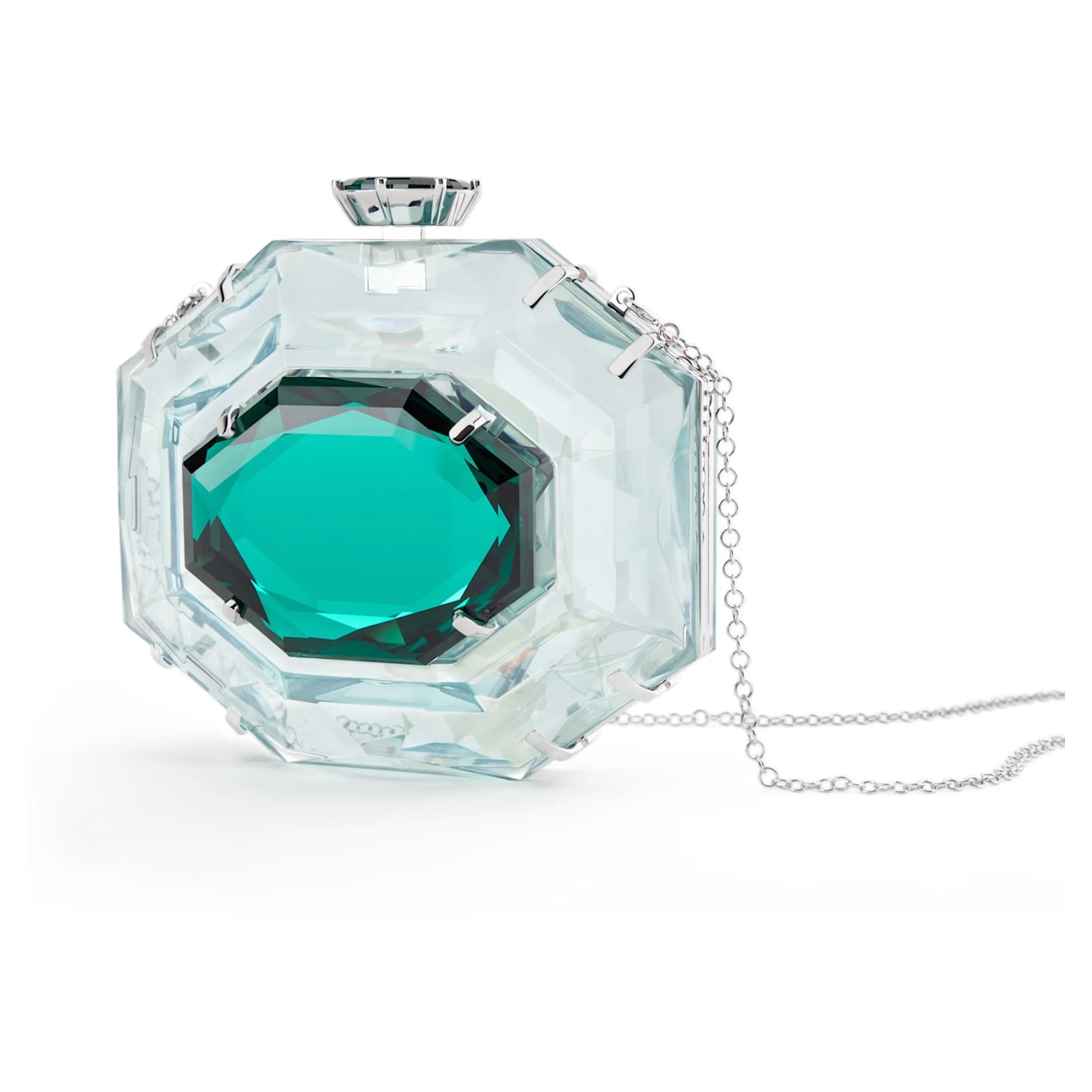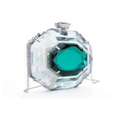 Dress up day or night looks with this truly unique clutch bag. Showcasing a vibrant emerald-cut crystal at its center, this striking design features a silver-tone frame and elegant clasp fastening. Style yours with a floor-sweeping evening gown or jumpsuit to make a showstopping entrance at your next event.