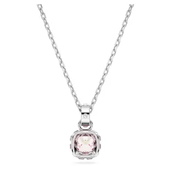 Swarovski Birthstone Pendant Square Cut, June, Pink, Rhodium Plated