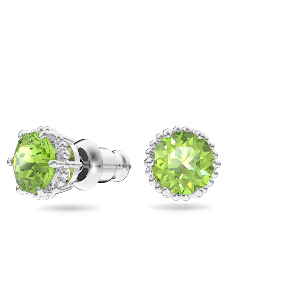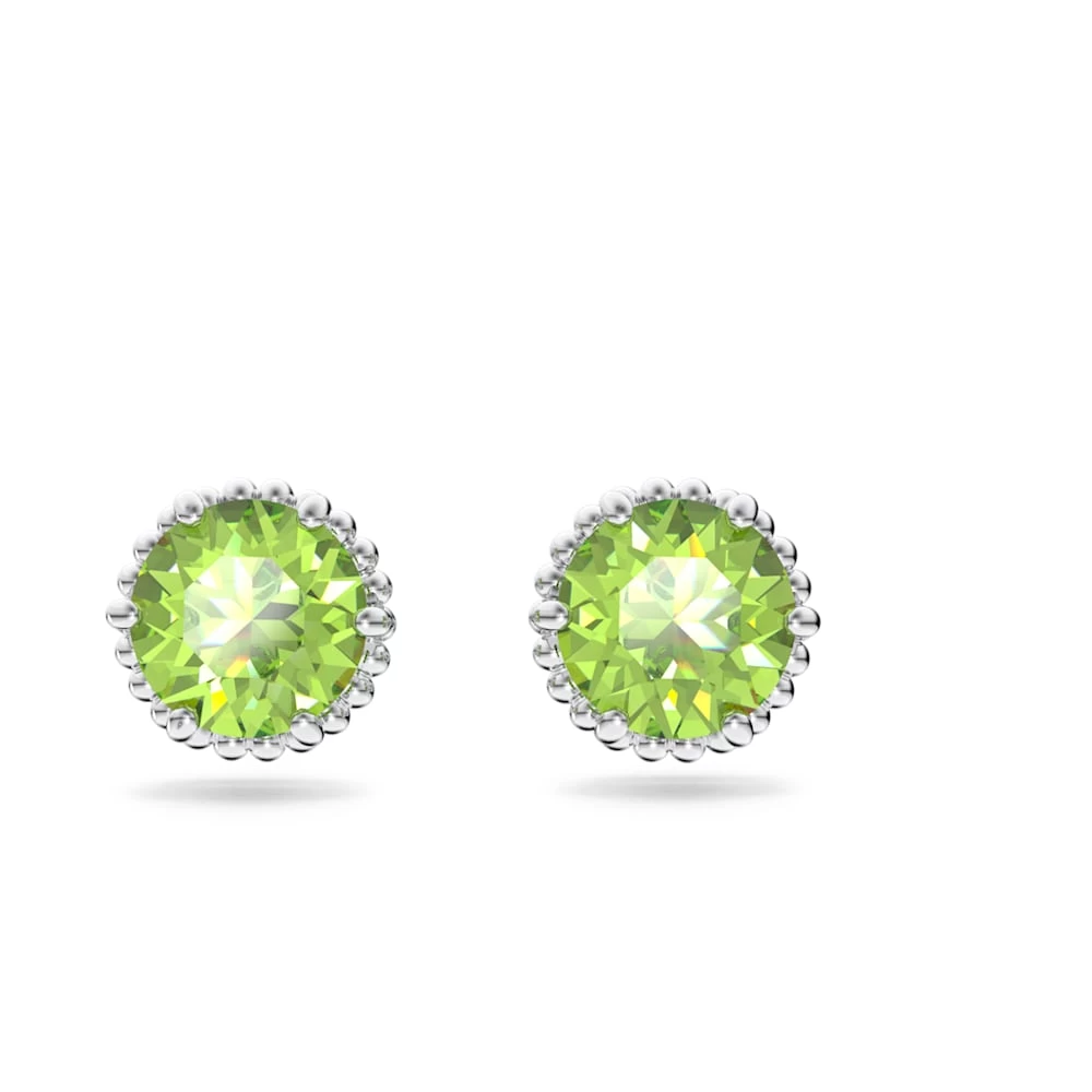 Swarovski Birthstone Stud Earrings Round Cut, August, Green, Rhodium Plated
