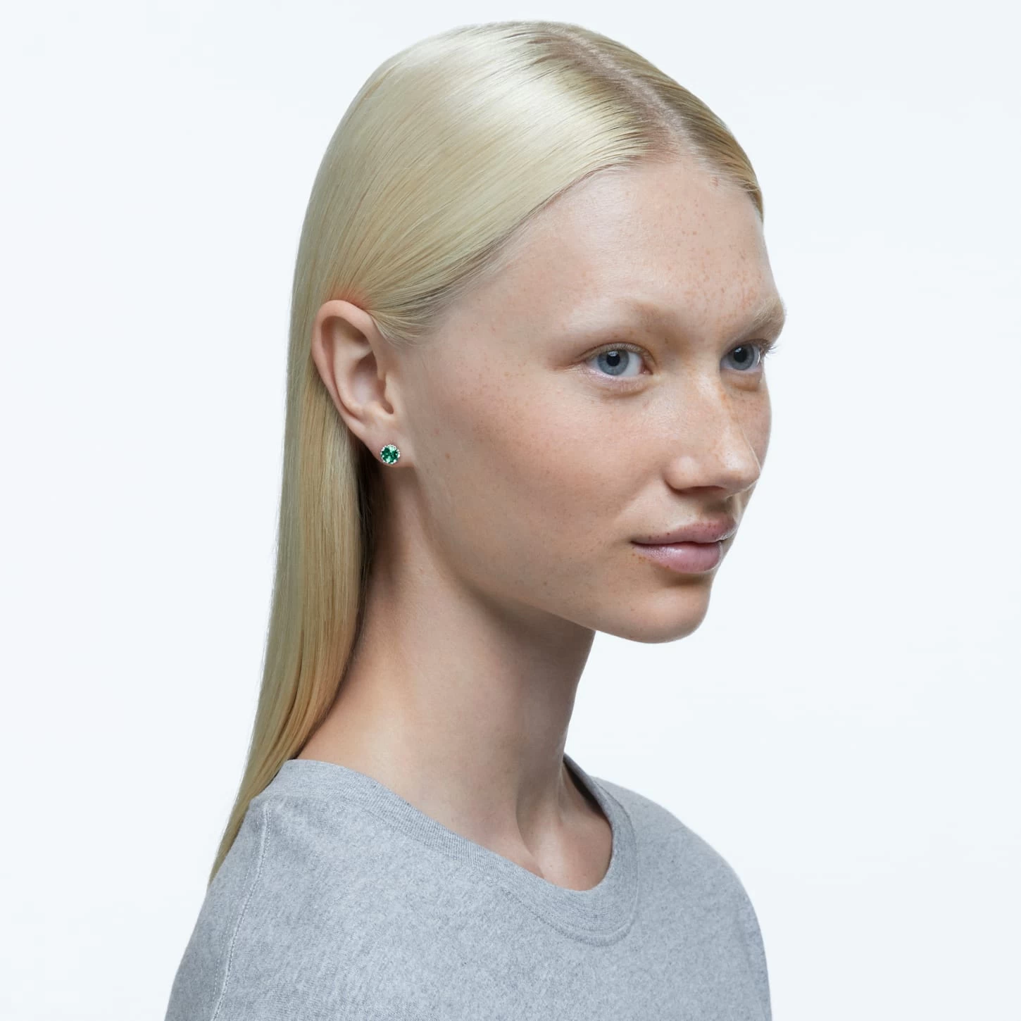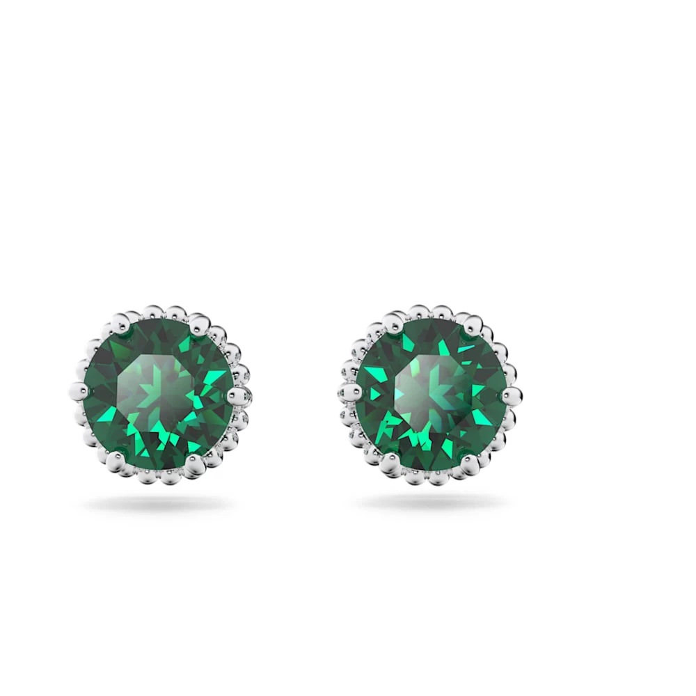 Swarovski Birthstone Stud Earrings Round Cut, May, Green, Rhodium Plated