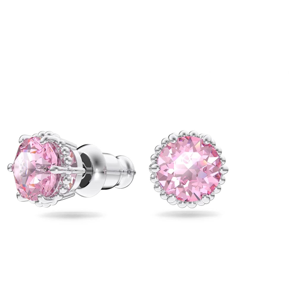 Swarovski Birthstone Stud Earrings Round Cut, October, Pink, Rhodium Plated