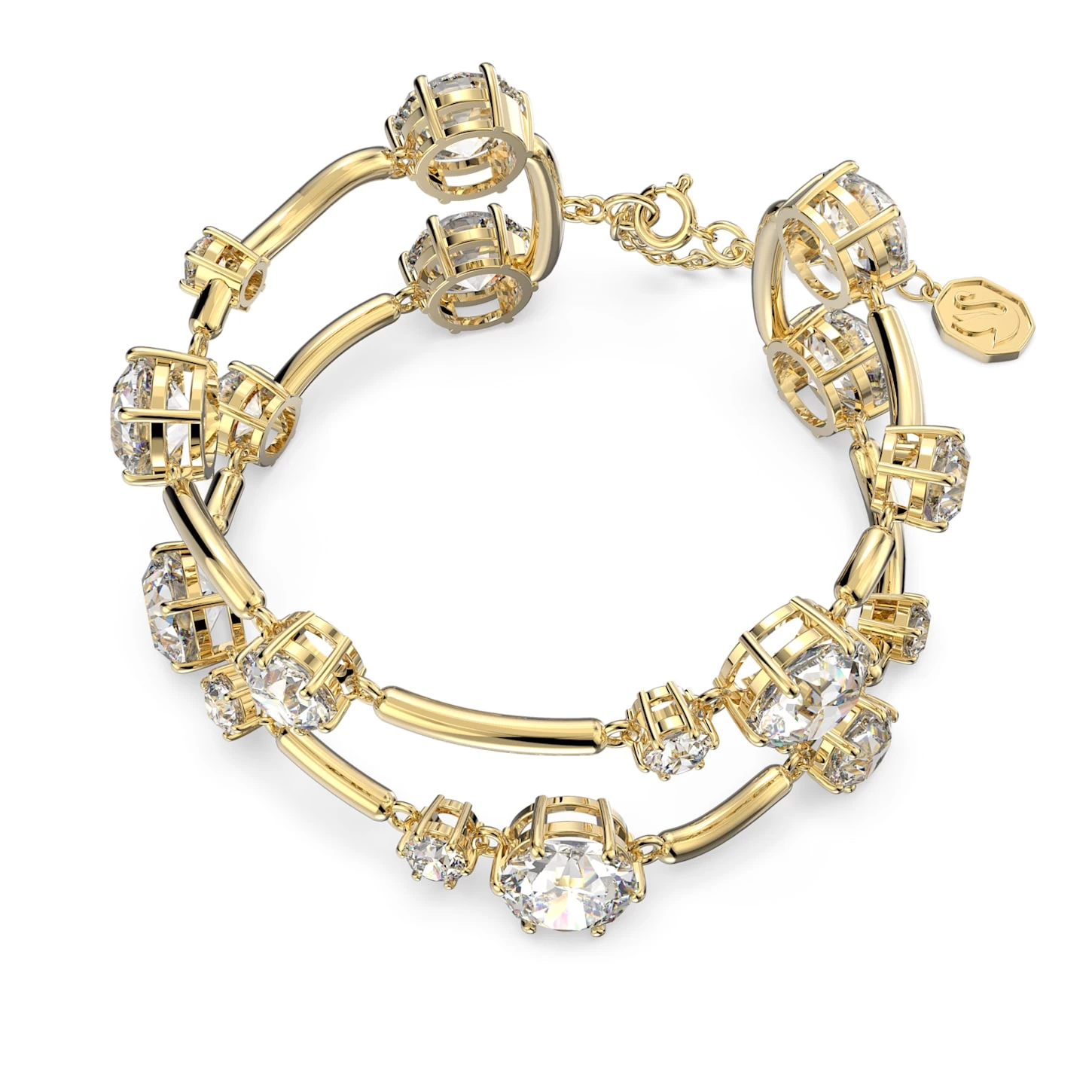 Swarovski Constella Double Bangle Round Cut, White, Gold-tone Plated