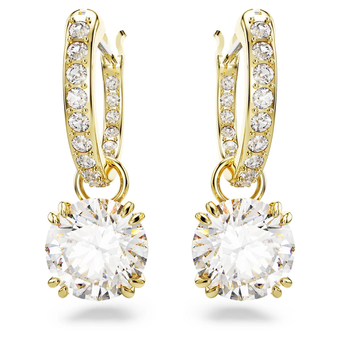 Swarovski Constella Drop Earrings Round Cut, White, Gold-tone Plated