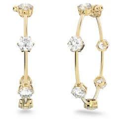 Swarovski Constella Hoop Earrings Round Cut, Medium, White, Shiny gold-tone Plated