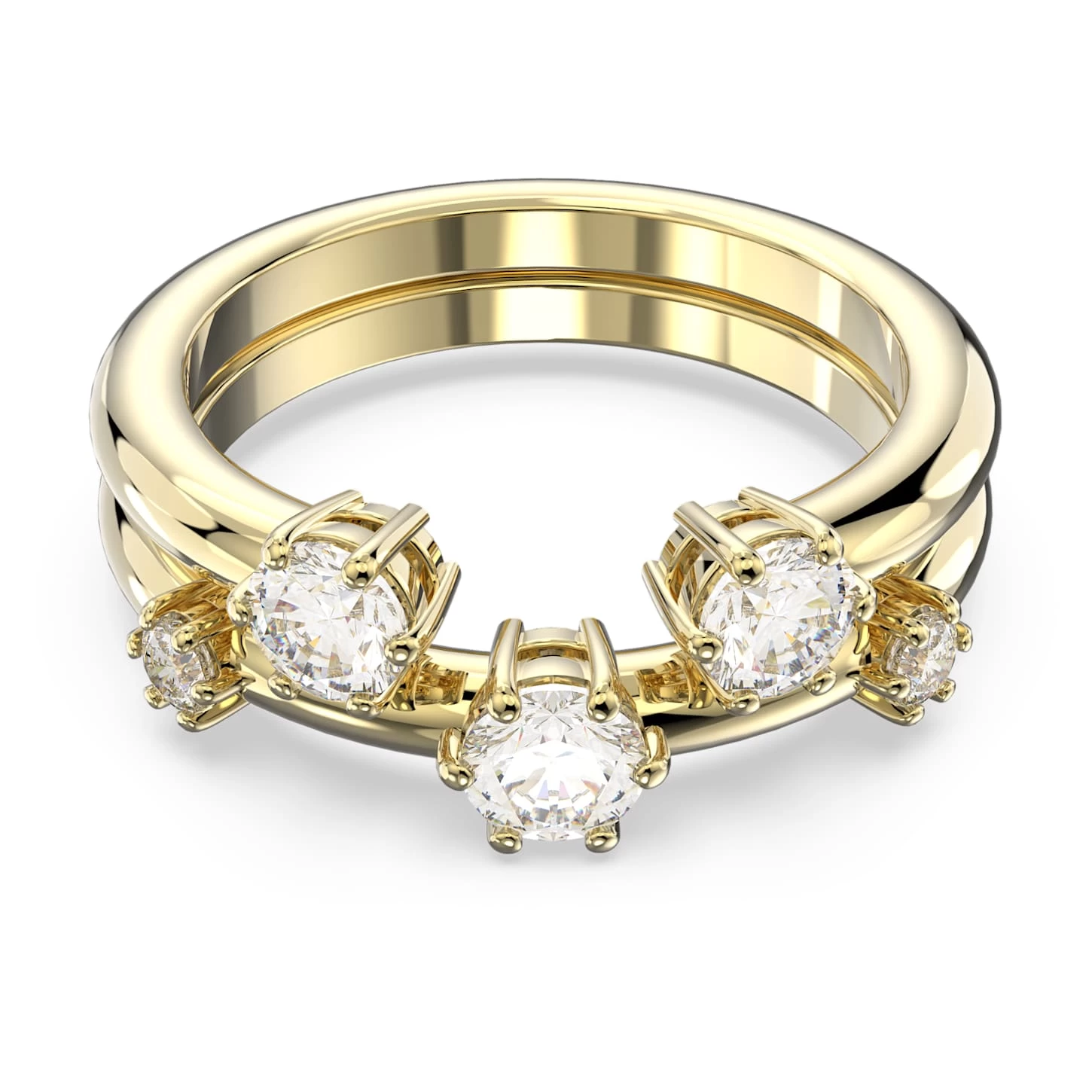 Swarovski Constella Ring Set (2), Round Cut, White, Gold-tone Plated