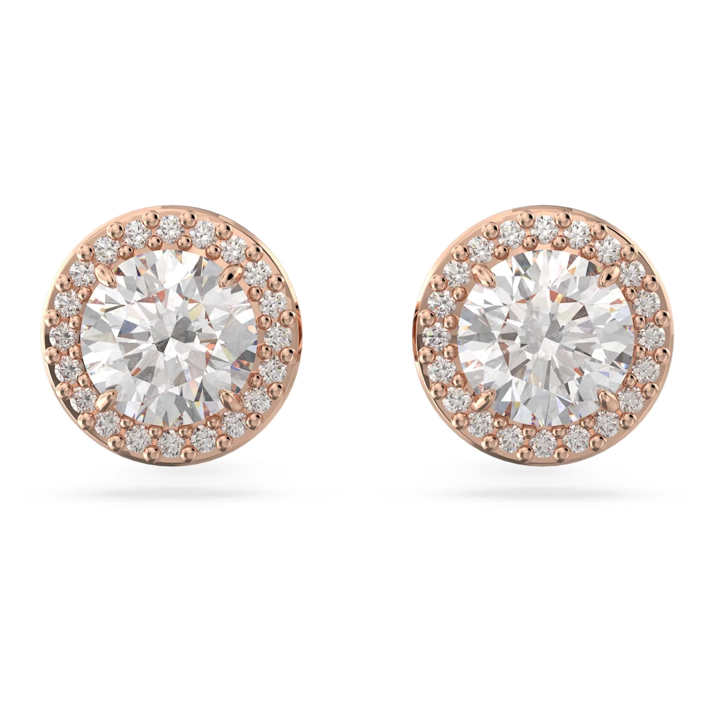 Swarovski Constella Stud Earrings Round Cut, Pavé, White, Rose Gold-tone Plated