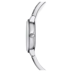 Dazzle in this new watch − the first to use Swarovski’s famed ultra fine Crystal Rocks. Daring and elegant, it shines with a lavish coating of silvery crystals. The stainless steel case and bangle and white silver-tone sunray dial complete the sleek design. A brilliant touch of glamour for your daily look, it perfectly unites a modern aesthetic with our world-renowned quality. The bangle is designed to fit any wrist, and the bracelet length can be easily adjusted. Specifications: Case – 29 mm; Water resistant up to 50 m; Swiss made.