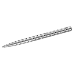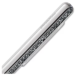 This chrome plated Swarovski ballpoint pen combines a slender, streamlined silhouette with a modern, minimalistic aesthetic. The highlight of the design is a sparkling strip of crystals with a light chrome effect in our ultra-fine Crystal Rocks technique, which runs along both sides and over the end of the pen. Delivered in an elegant pouch, the pen also features a chrome plated metal clip and barrel. The Swarovski logo appears on the barrel and the high-quality ink cartridge can be replaced easily. An ideal gift for any occasion.