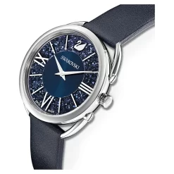 Swarovski Crystalline Glam Watch Swiss Made, Leather Strap, Blue, Stainless Steel
