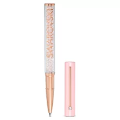 This Swarovski ballpoint pen was inspired by color codes and silhouettes from the cosmetics industry and is perfect for modern women with a feminine style. Its barrel is filled with hundreds of glittering crystals using the iconic Crystalline technique. The pen features an eye-catching light pink lacquered cap adorned with a clear crystal, and its high-quality ink refill can be replaced. Crystalline Gloss ballpoint pens are a stylish addition to your office and make charming gifts.