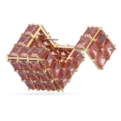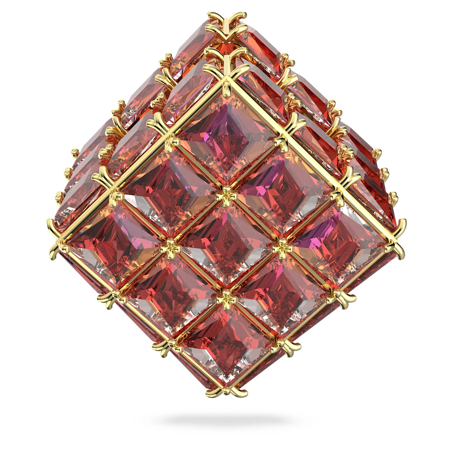 A ‘mathemagical’ structure from the Curiosa family, this striking stud earring gives the illusion that it’s suspended from your ear. Designed with a geometric lattice of square princess-cut stones, its vibrant orange hue is bichromatic, creating a unique kaleidoscopic effect from every angle. Delicate stone embellishments complete the intricate design, set on gold-tone plating. Wear yours solo or spark your imagination and stack with contrasting colors and shapes.