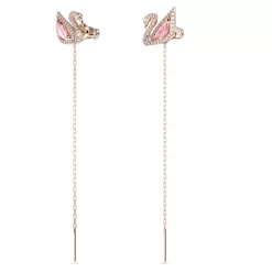 Swarovski Dazzling Swan Drop Earrings Swan, Pink, Rose Gold-tone Plated