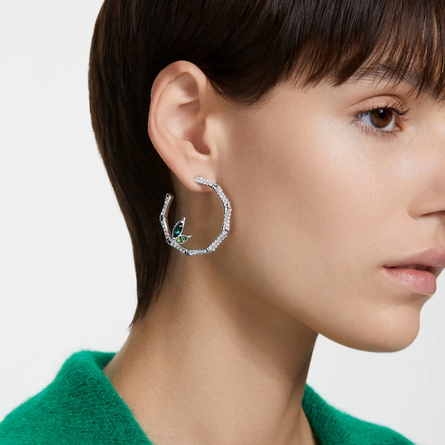 Swarovski Dellium Hoop Earrings Bamboo, Green, Rhodium Plated