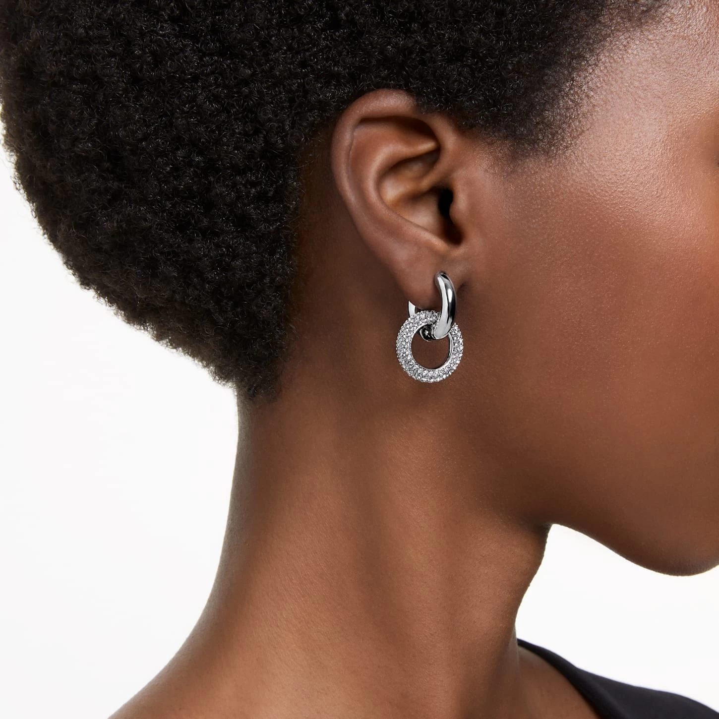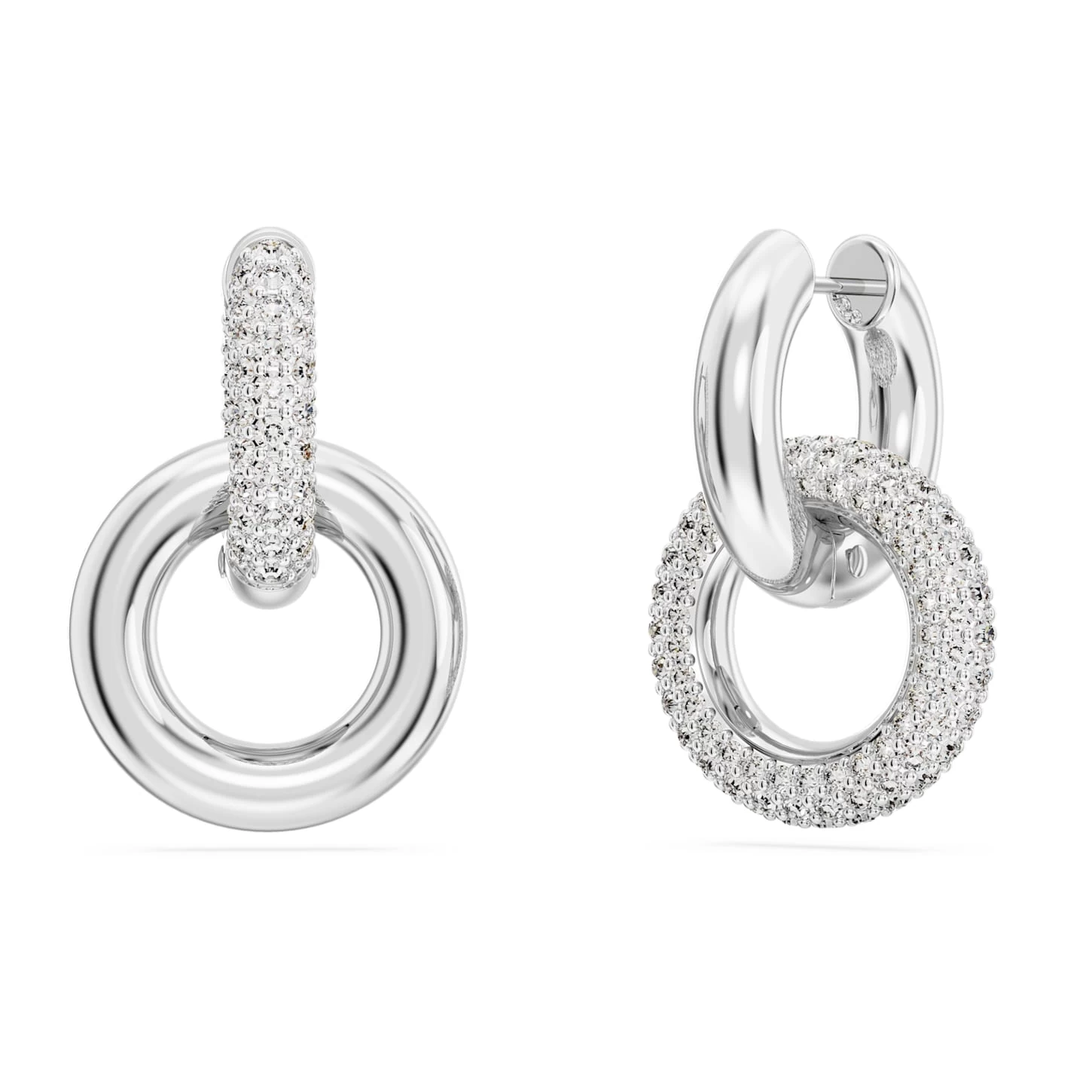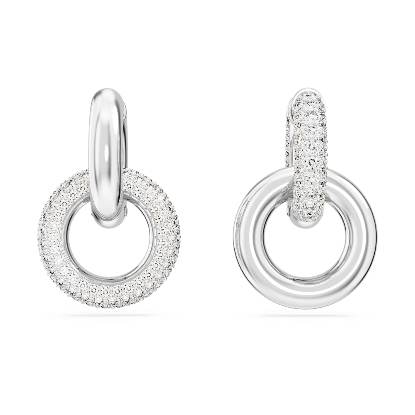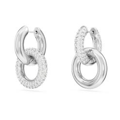 Swarovski Dextera Hoop Earrings Asymmetrical Design, Interlocking Loop, White, Rhodium Plated
