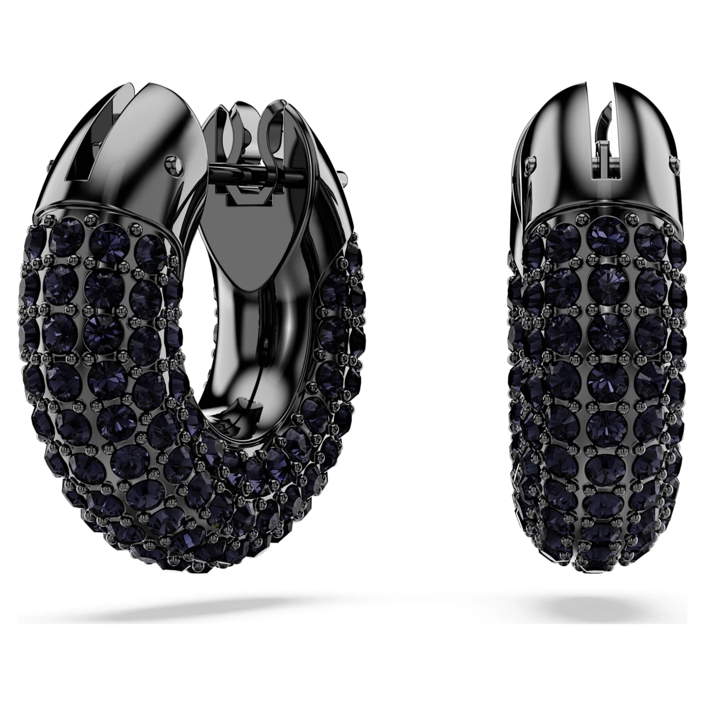 Swarovski Dextera Hoop Earrings Small, Black, Ruthenium Plated