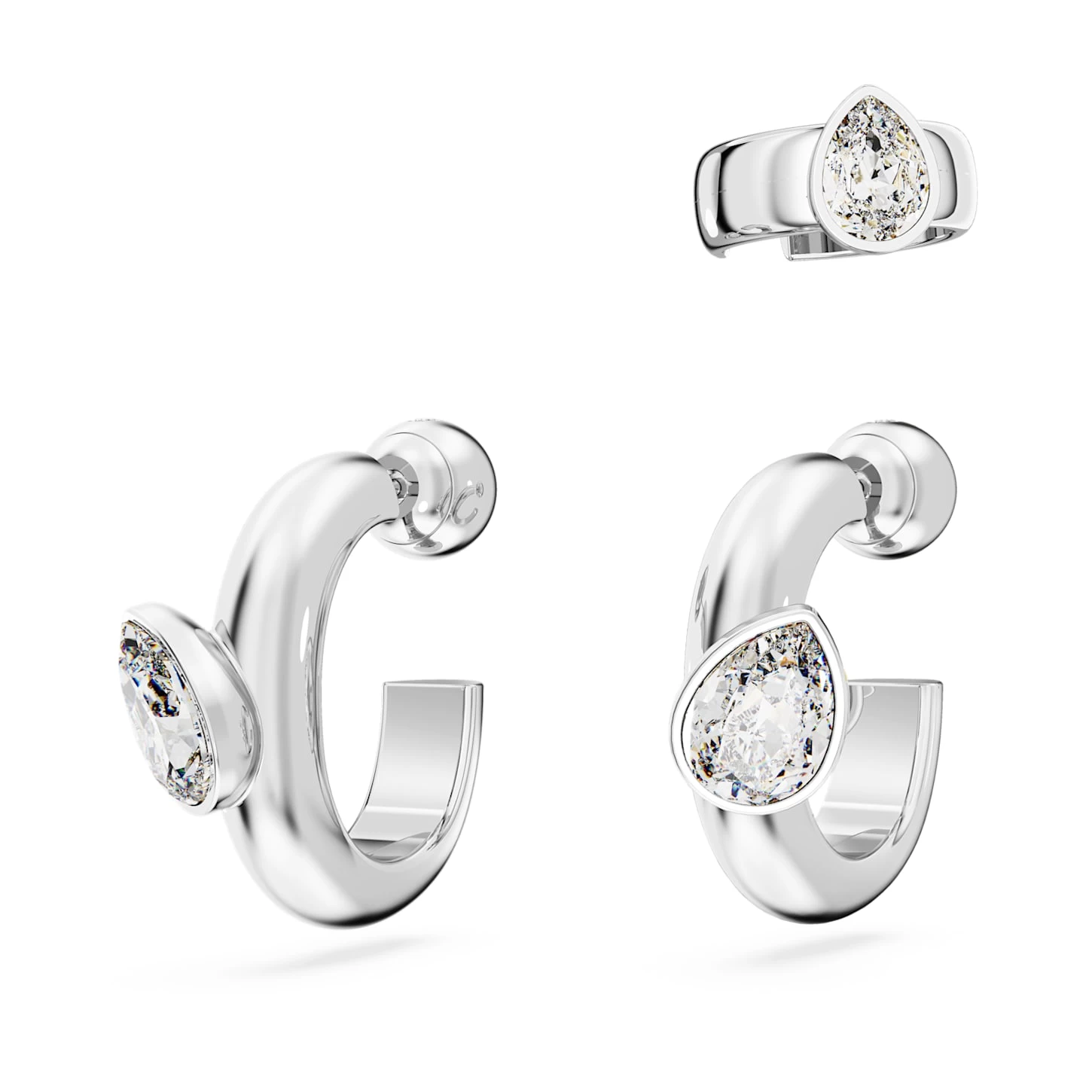 Swarovski Dextera Hoop Earrings With Ear Cuff Set (3), Pear Cut, White, Rhodium Plated