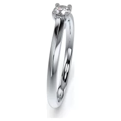 Sublime shine and clarity of cut come together in this Essentials solitaire ring, featuring an environmentally conscious 0.15 carat Swarovski Created Diamond set on a rhodium plated sterling silver band. This is an everyday creation of understated elegance that is exceptionally giftable, to yourself or another.