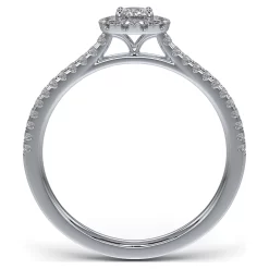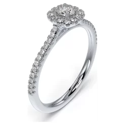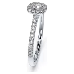 This Essentials ring is distinctive for its round-cut centerstone with a cushion-shaped halo and pavé-set band. Radiating light and positivity, it features environmentally conscious Swarovski Created Diamonds totaling 0.30 carat set on rhodium plated sterling silver. A perfect piece of everyday elegance to celebrate life’s special moments.