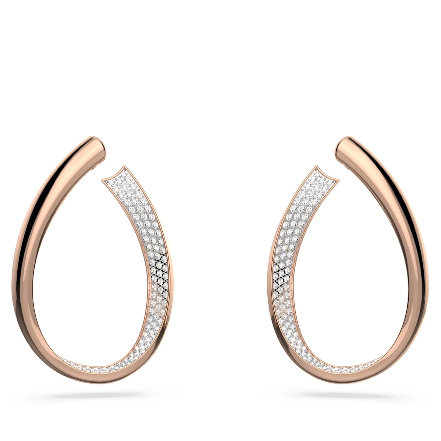 Designed to mesmerize, these hoop earrings are as versatile as they are eye-catching. Featuring a unique ribbon motif, they are adorned with white crystal pavé and finished with classic rose gold-tone plating. Day or night, dressed up or down, they adapt to the occasion.