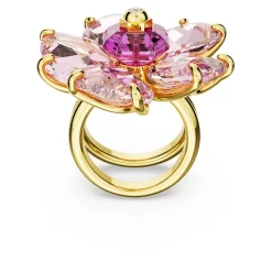 Swarovski Florere Cocktail Ring Flower, Pink, Gold-tone Plated