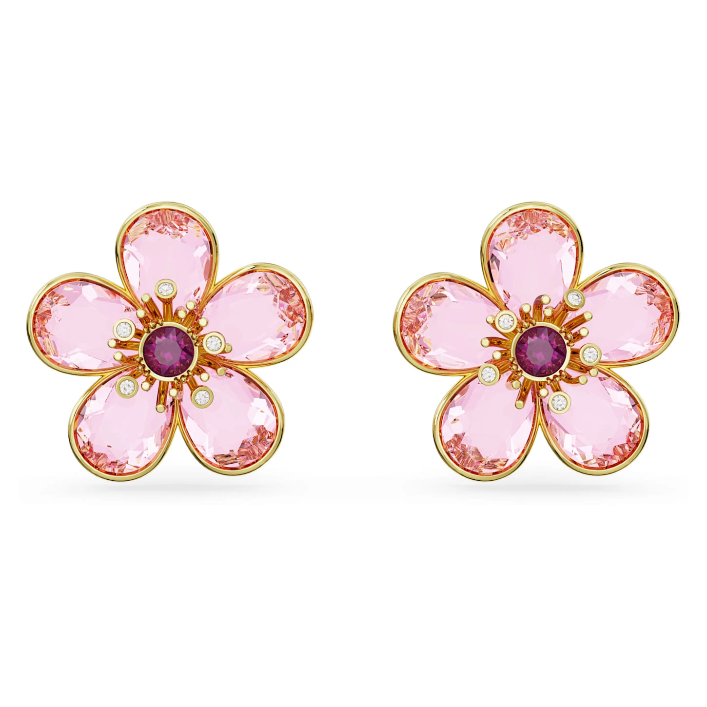 Swarovski Florere Stud Earrings Flower, Pink, Gold-tone Plated