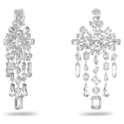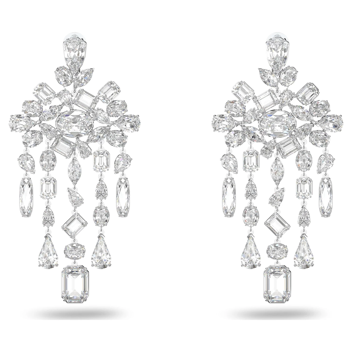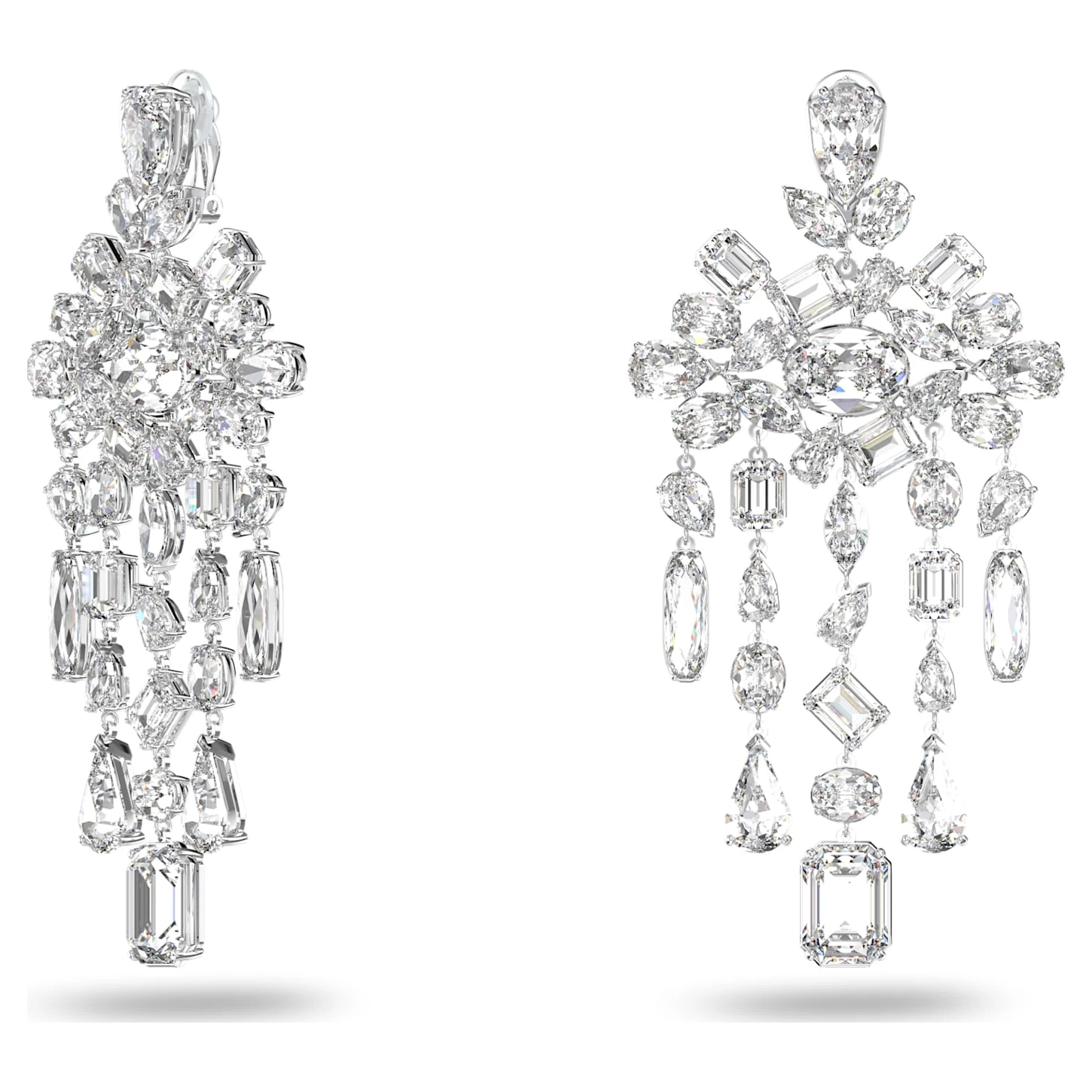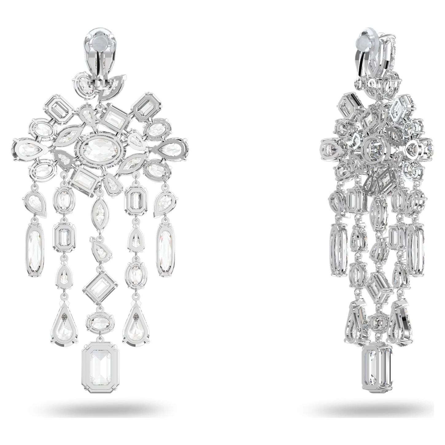 Swarovski Gema Clip Earrings Mixed Cuts, Chandelier, Extra Long, White, Rhodium Plated