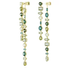 Swarovski Gema Drop Earrings Asymmetrical Design, Mixed Cuts, Extra Long, Green, Gold-tone Plated