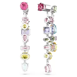 Swarovski Gema Drop Earrings Asymmetrical Design, Mixed Cuts, Long, Multicolored, Rhodium Plated