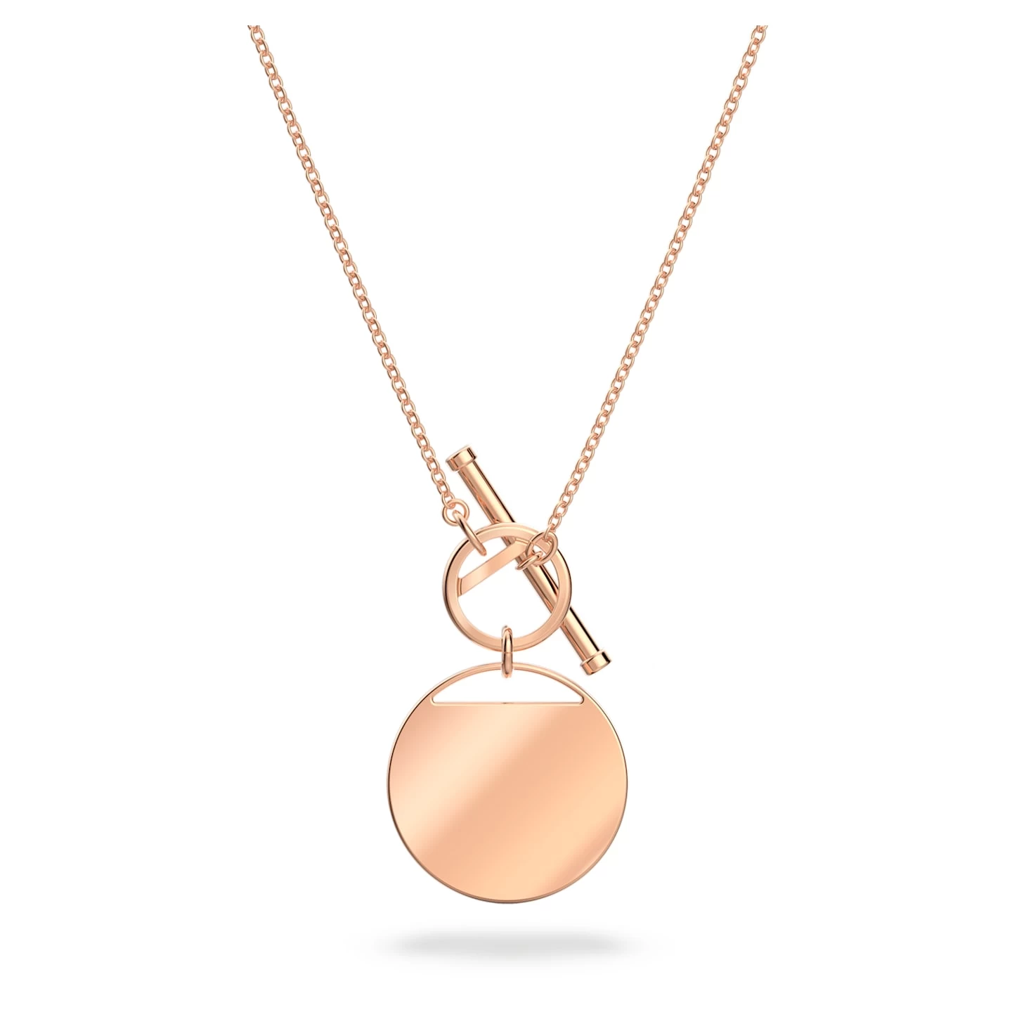 This necklace by Swarovski is perfectly on-trend. The necklace closes in the front with a stylish t-bar closure, while its centerpiece can be flipped to create two different styles. It is adorned by a coin which is covered with clear crystal pavé on one side. Ideal for embellishing casual, everyday outfits and great for trendy layering looks together with other pieces of jewelry.