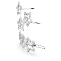 Swarovski Hair Clip Set (3), Mixed Cuts, Star, White, Rhodium Plated