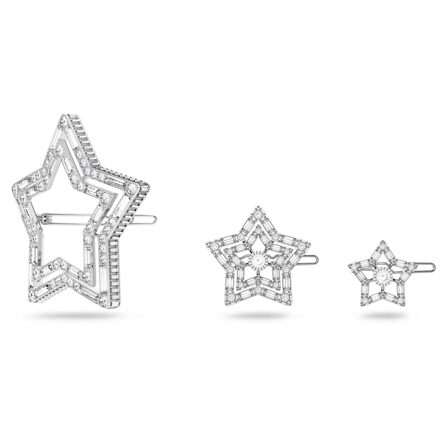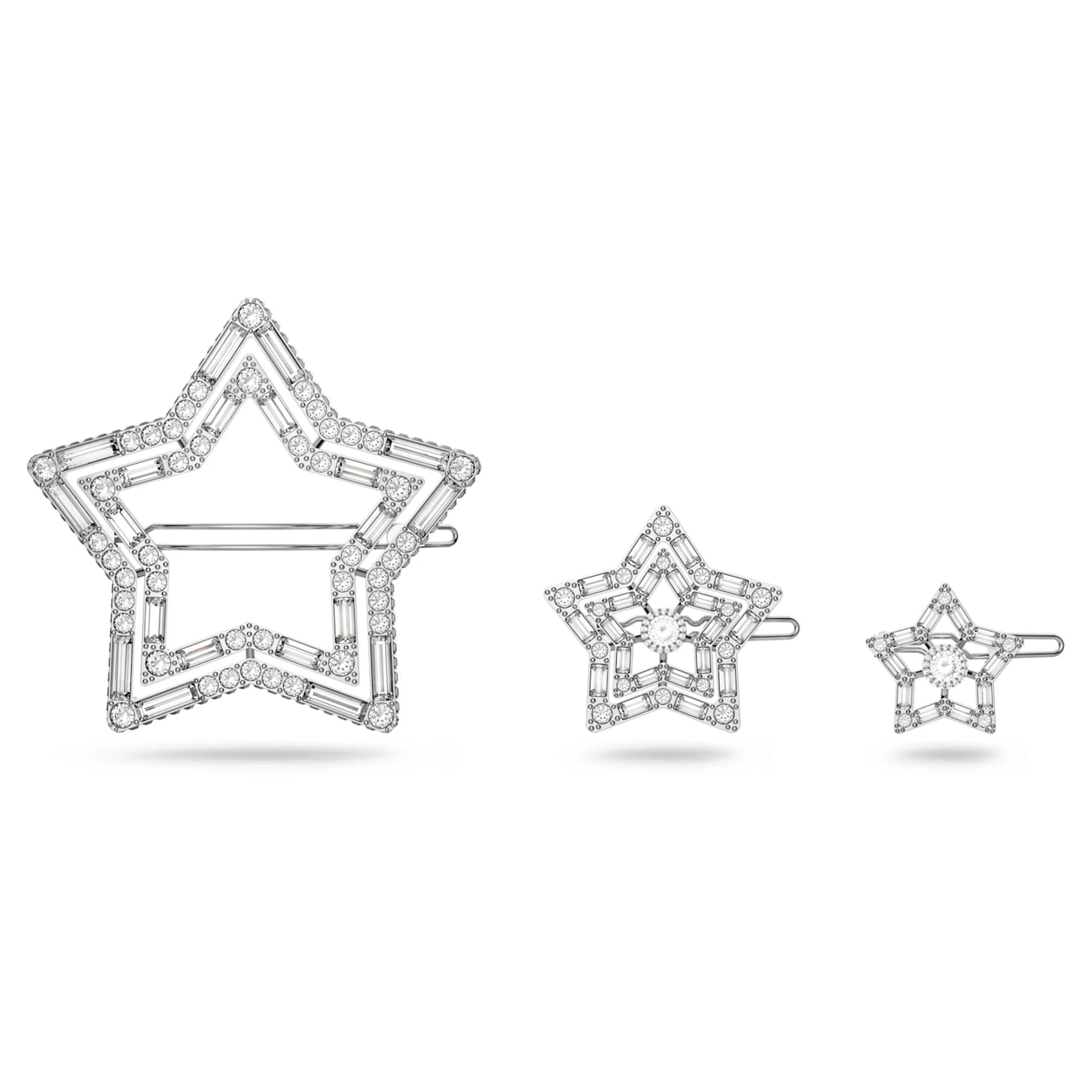 Swarovski Hair Clip Set (3), Star, White, Rhodium Plated