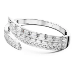 Swarovski Hyperbola Bangle Carbon Neutral Zirconia, Mixed Cuts, White, Rhodium Plated