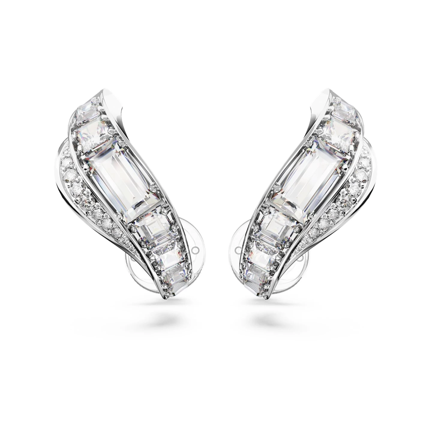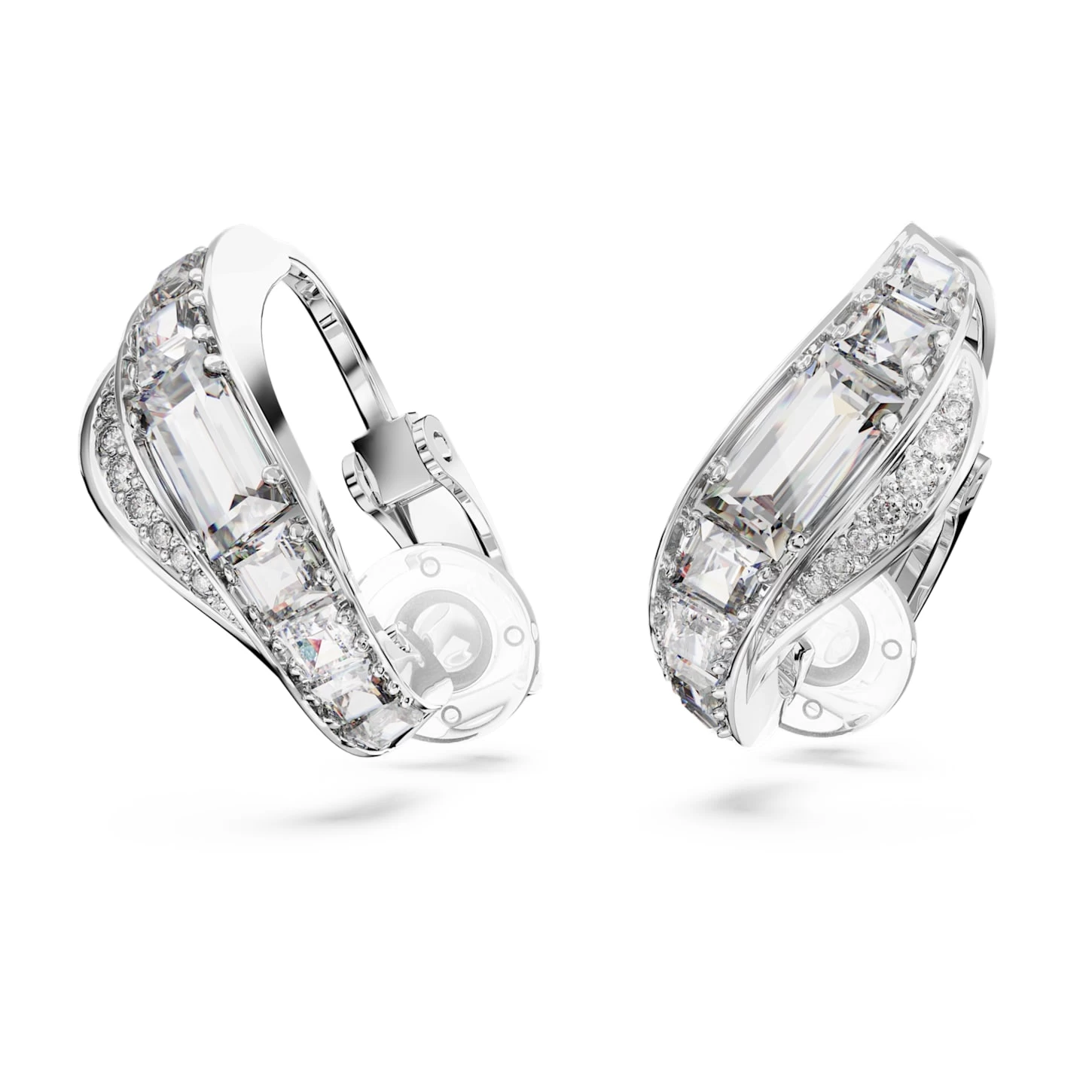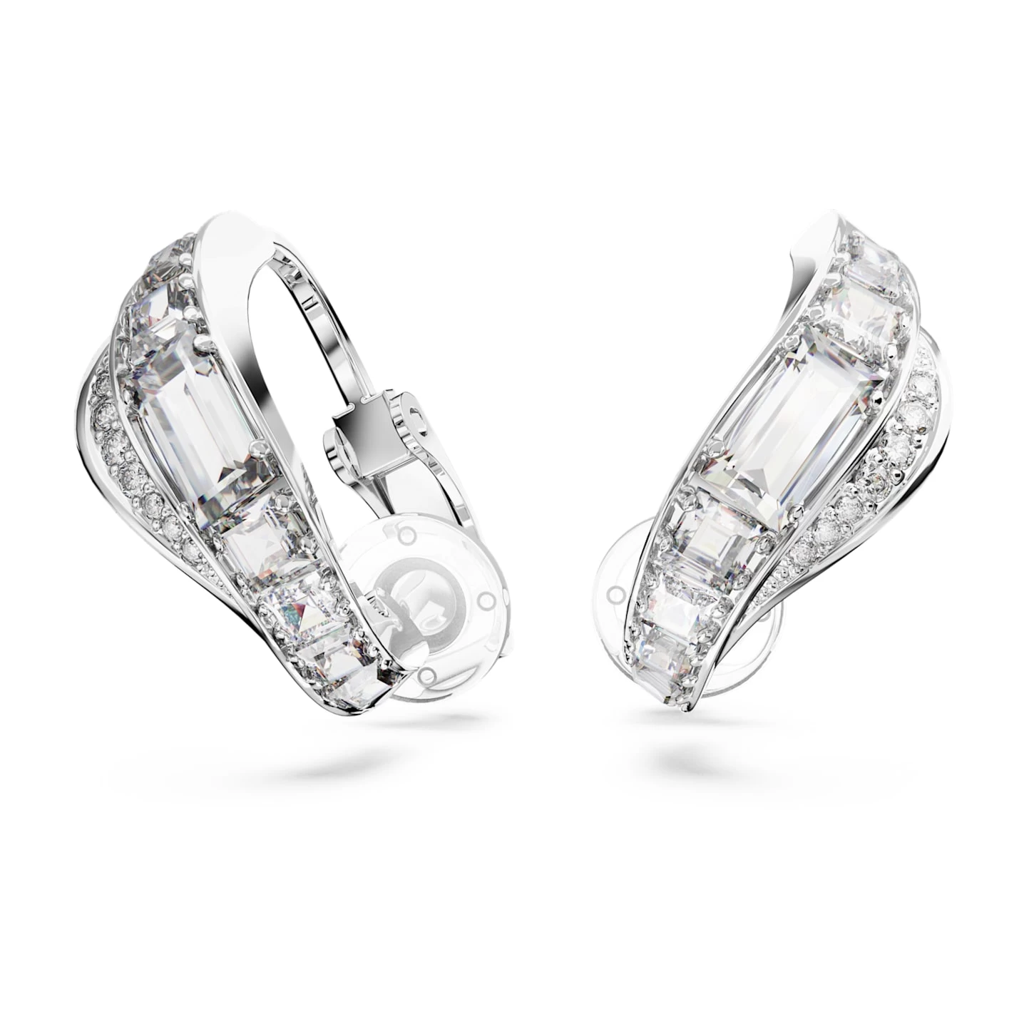 Swarovski Hyperbola Clip Earrings Carbon Neutral Zirconia, Mixed Cuts, White, Rhodium Plated