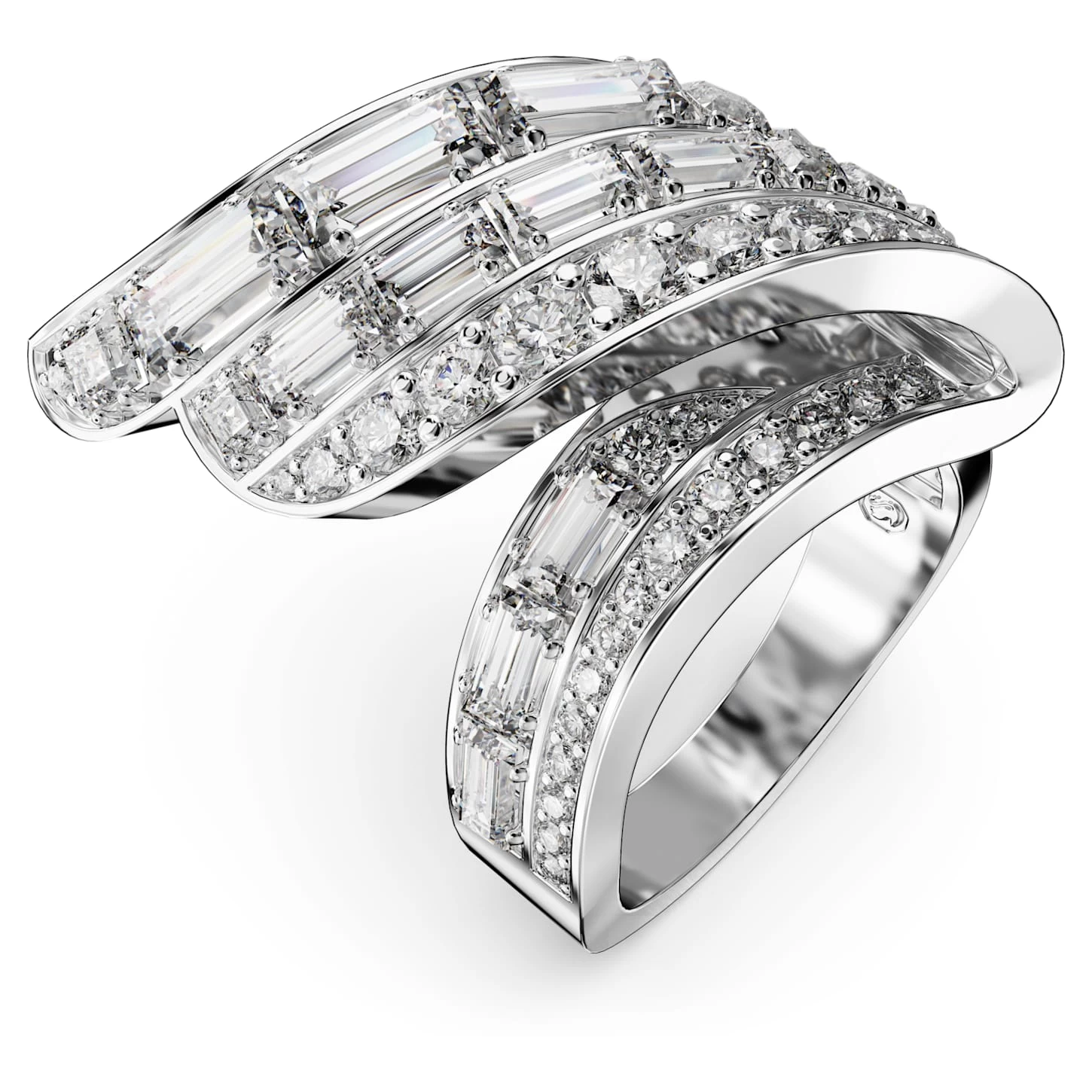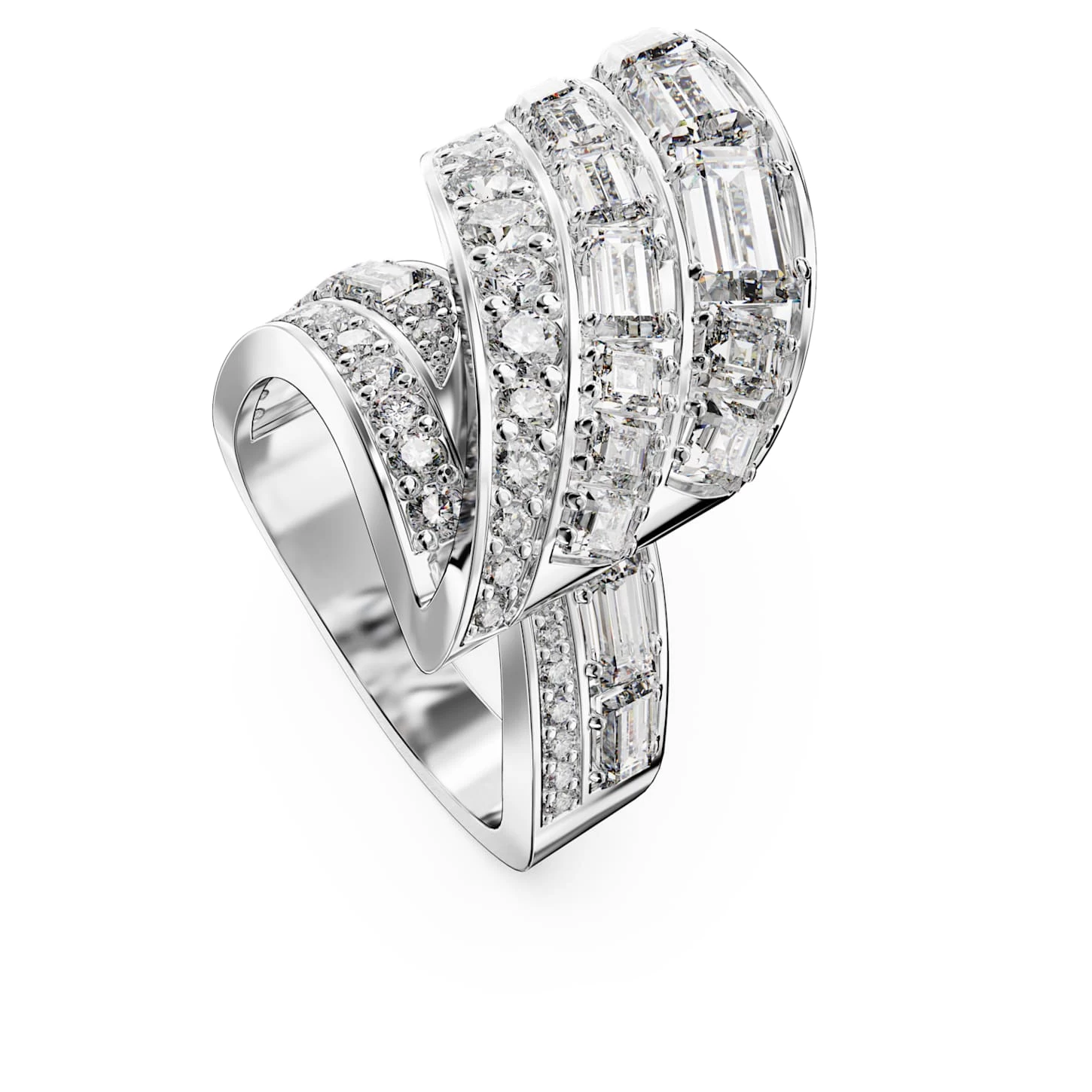 Swarovski Hyperbola Cocktail Ring Carbon Neutral Zirconia, Mixed Cuts, White, Rhodium Plated