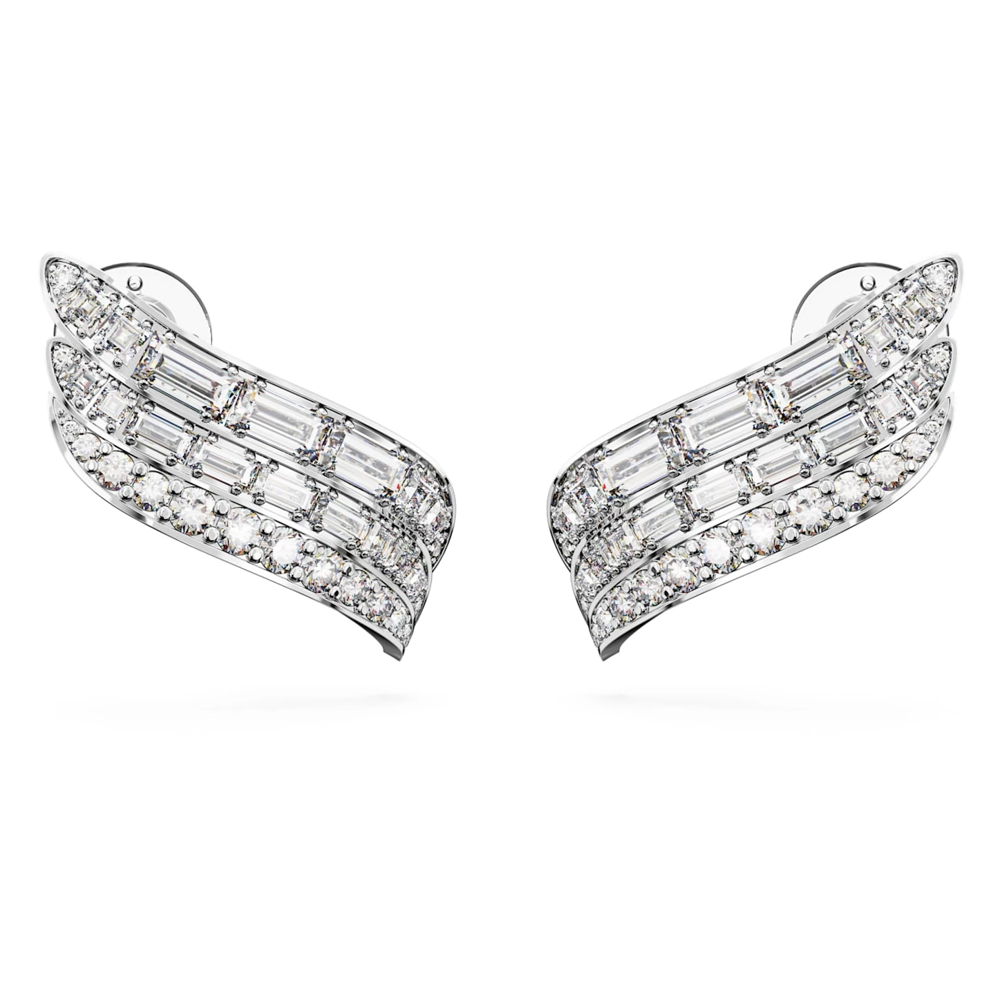 Swarovski Hyperbola Earrings Carbon Neutral Zirconia, Mixed Cuts, White, Rhodium Plated