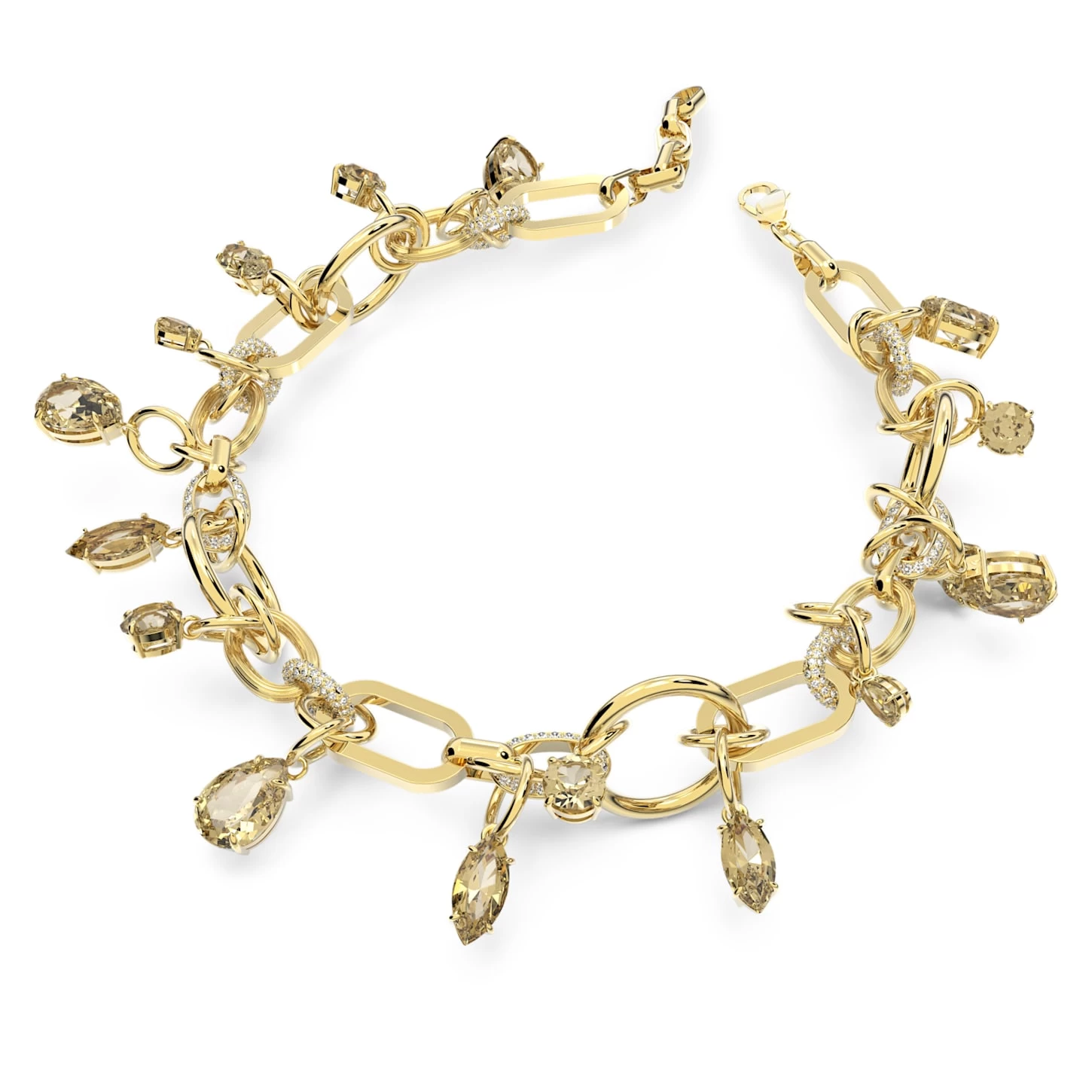 The classic chain necklace gets a contemporary update in this unique design. Highlighting Swarovski’s industrial influences, this gold-plated piece features mixed chain links adorned with elegant drop crystals in an earthy brown hue for an innovative spin on refinement. Wear yours solo or styled with other pieces from the Imber family for maximum impact. This necklace is part of the Imber family, designed by Creative Director Giovanna Engelbert for Collection III.