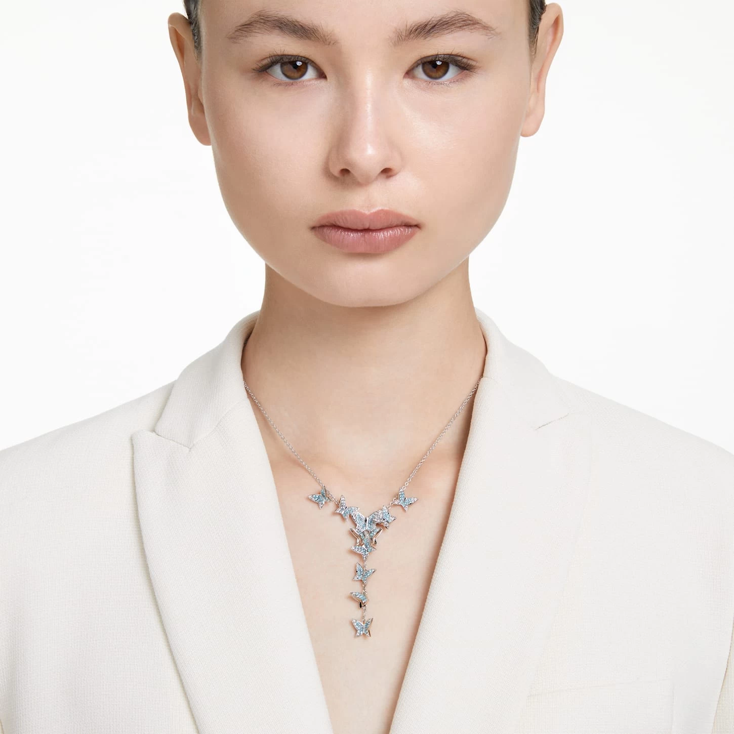 Swarovski Lilia Y Necklace Butterfly, Blue, Rhodium Plated