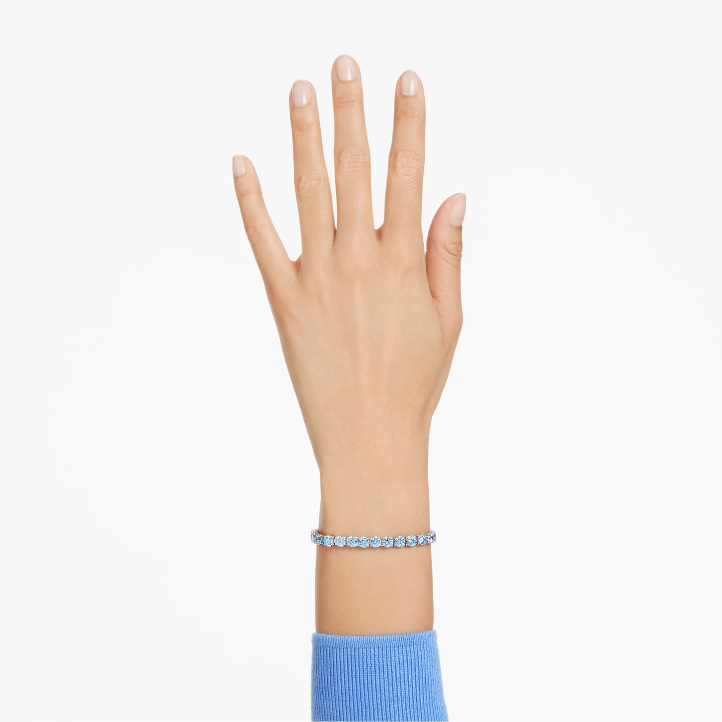 Swarovski Matrix Tennis Bracelet Round Cut, Medium, Blue, Rhodium Plated