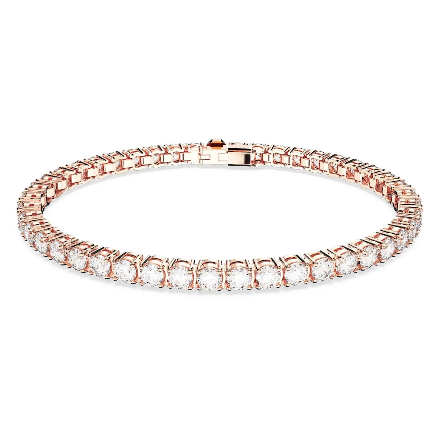 Swarovski Matrix Tennis Bracelet Round Cut, Small, White, Rose Gold-tone Plated