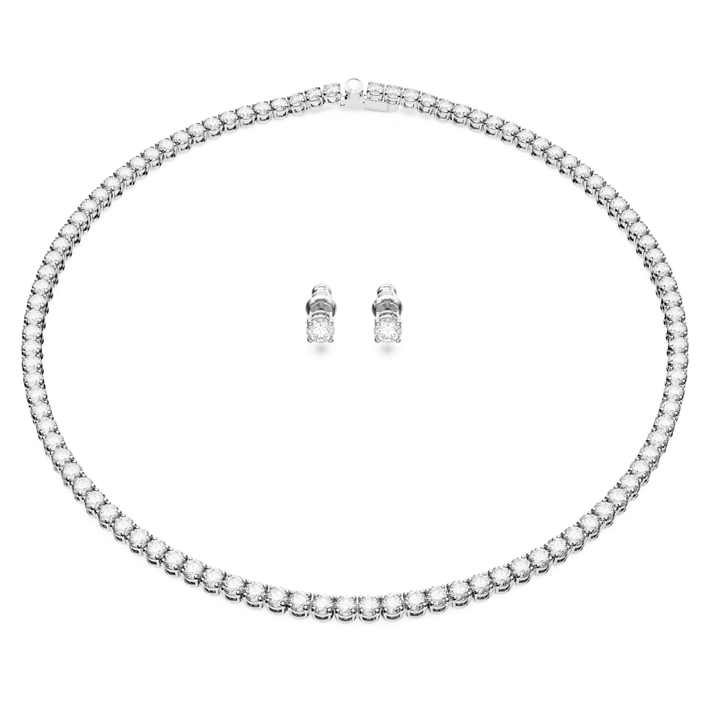 Swarovski Matrix Tennis Set Round Cut, White, Rhodium Plated