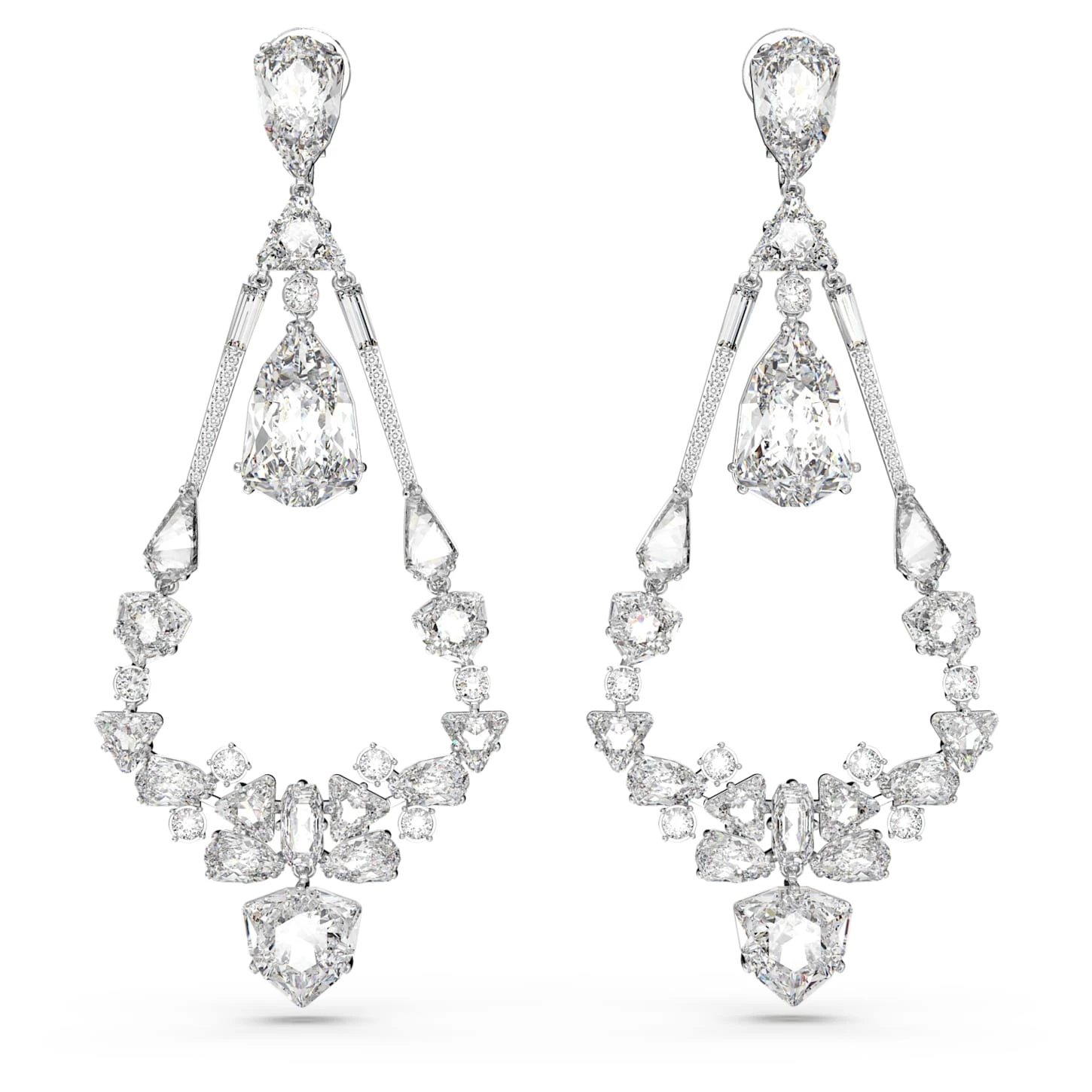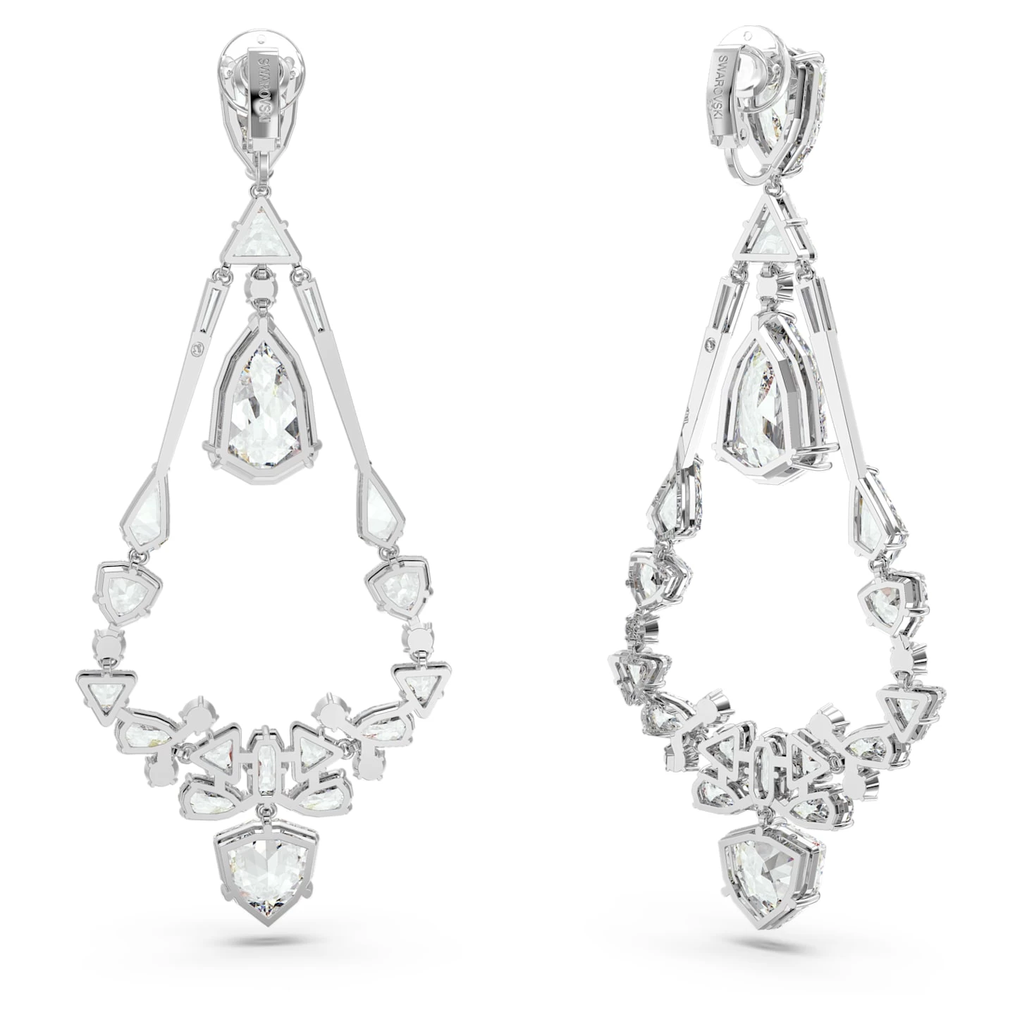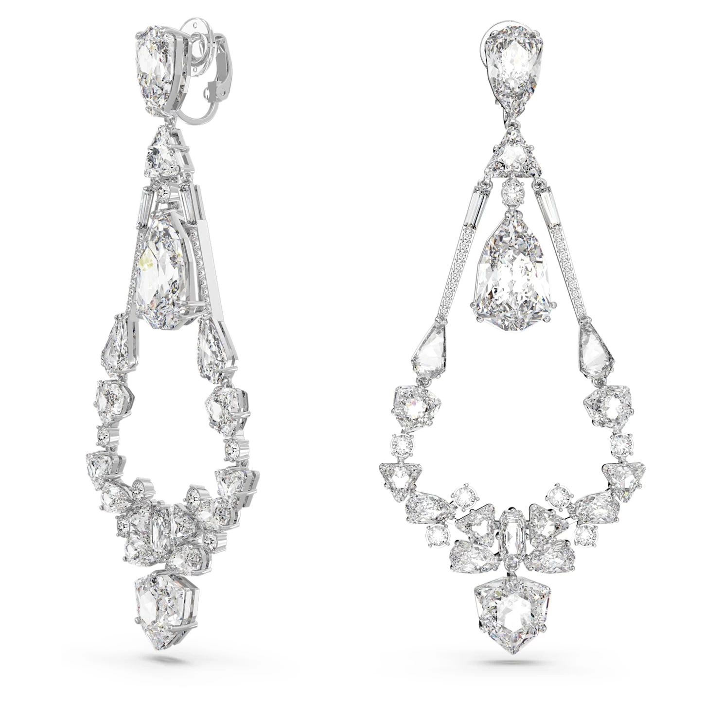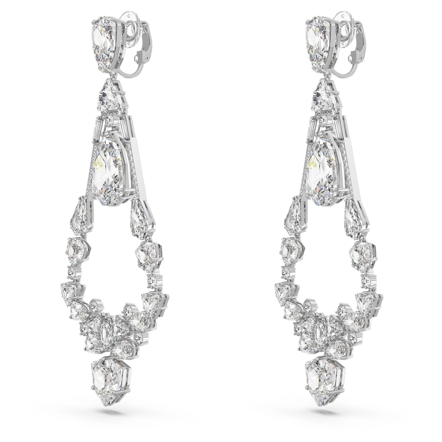 Swarovski Mesmera Clip Earrings Mixed Cuts, Chandelier, Long, White, Rhodium Plated