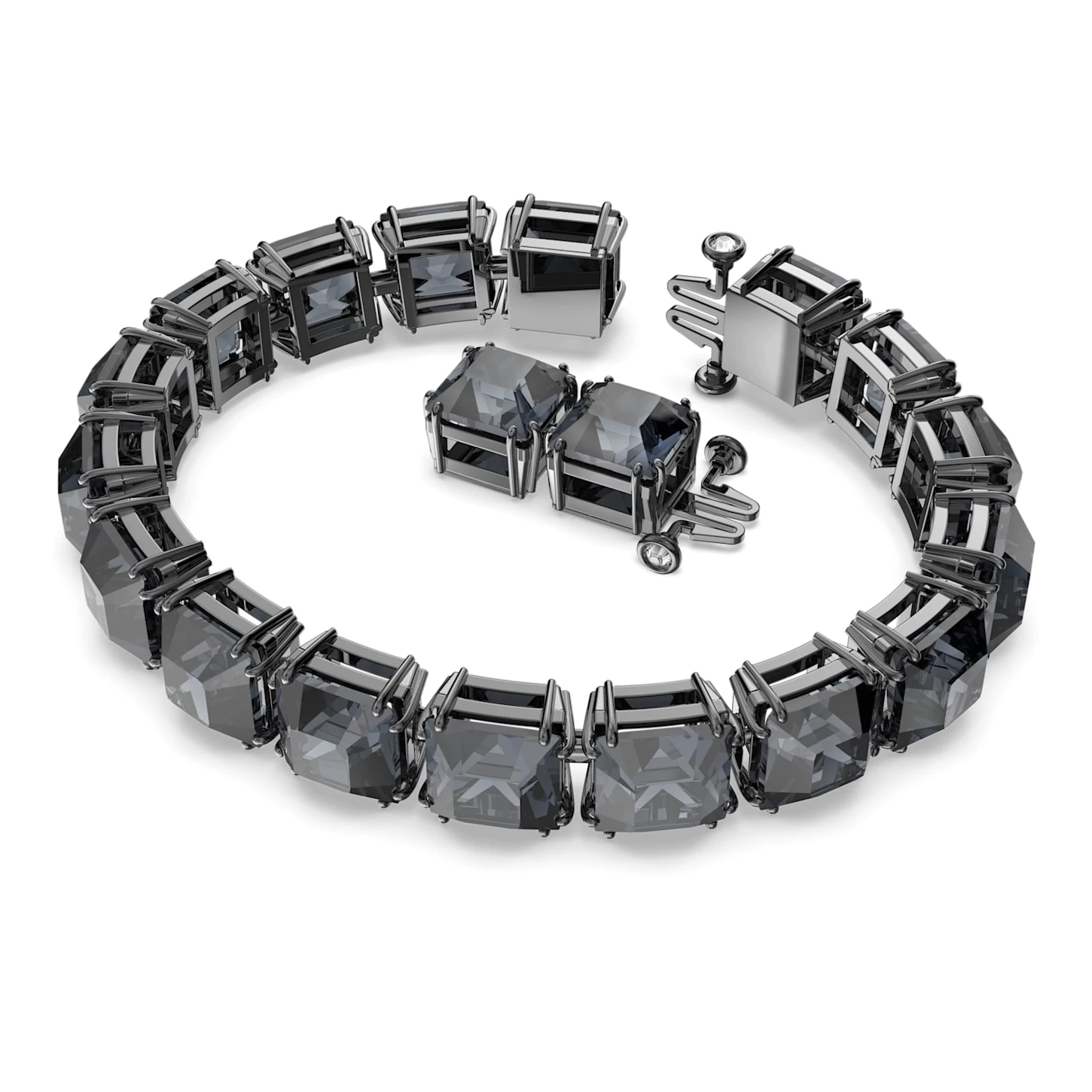 Swarovski Millenia Bracelet Square Cut, Medium, Gray, Ruthenium Plated