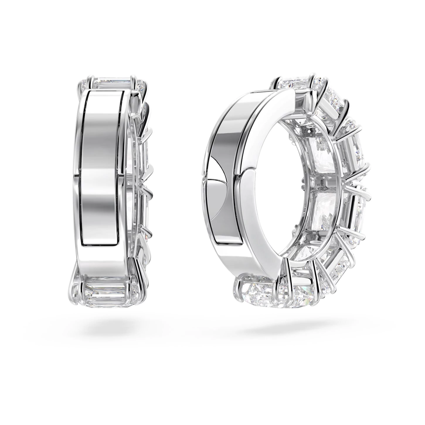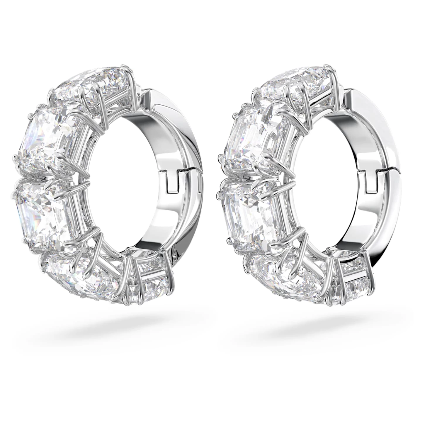 The essential style of our Millenia family is masterfully displayed in these shining clip earrings. A uniform row of clear square-cut stones is set in rhodium plating, igniting a harmonious balance of metal and crystals. It’s a dazzling look that can be enjoyed any time – day or night.