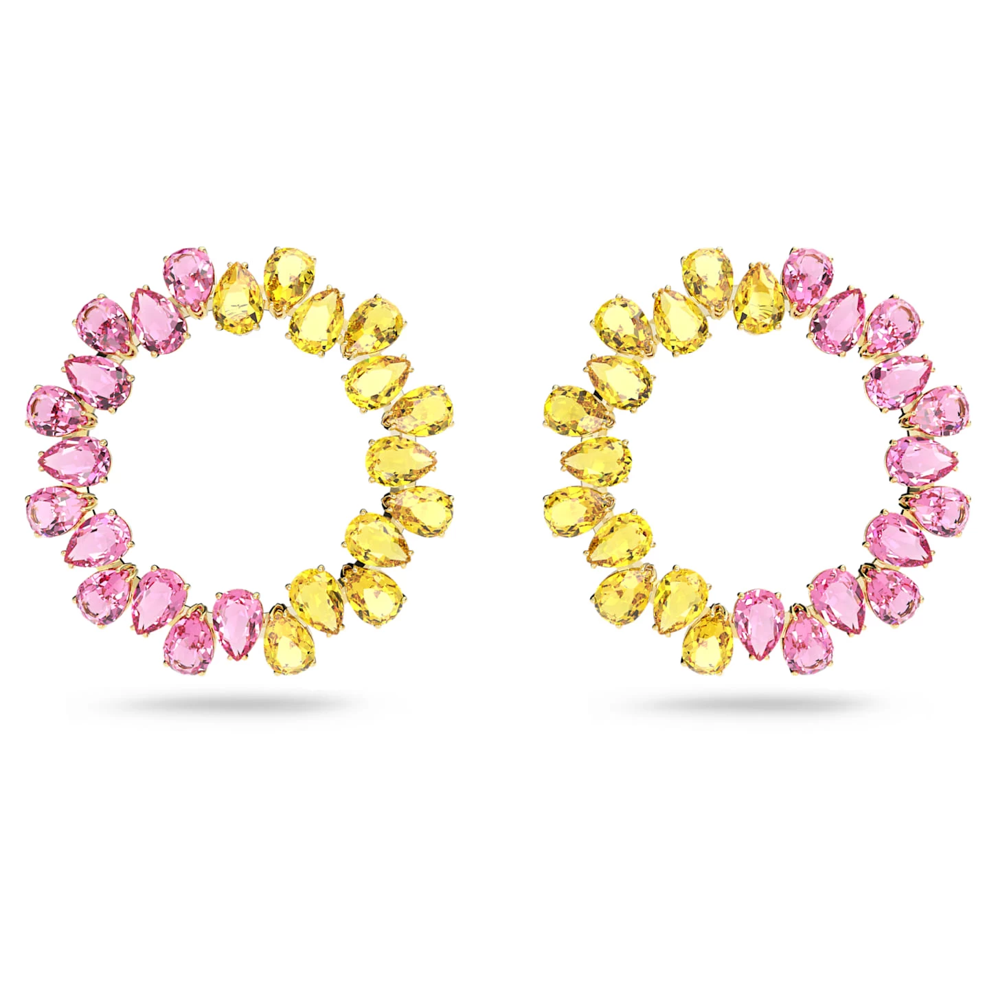 Swarovski Millenia Hoop Earrings Pear Cut, Large, Multicolored, Gold-tone Plated